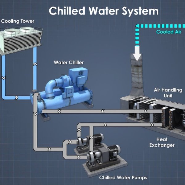 Chilled water systems are an incredibly energy-efficient cooling solution used in large buildings, offices, and commercial/industrial spaces. They circulate chilled water from a central chiller unit to air handling units (AHUs) across the facility, providing large-scale, cost-effective cooling.